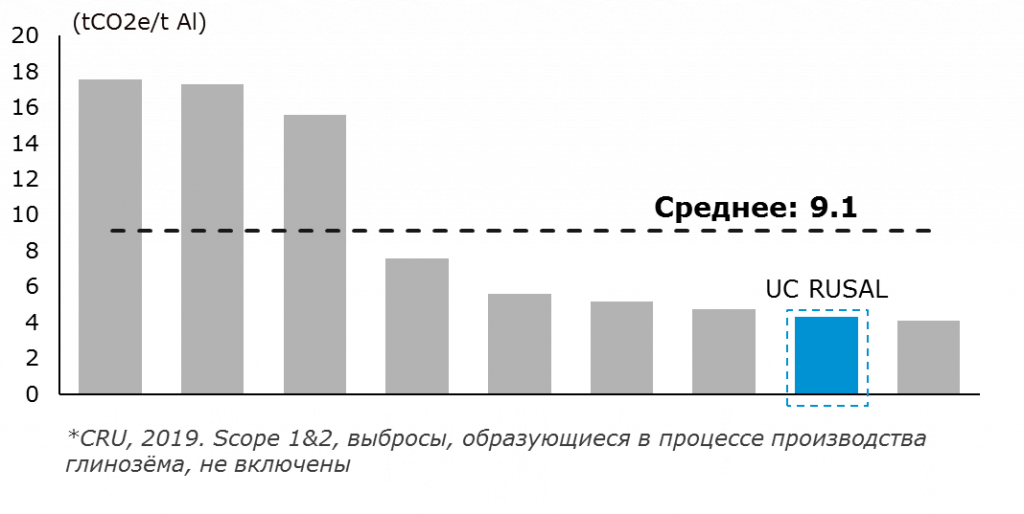 — >95% потребляемой электроэнергии из не углеродных источников, благодаря близкому расположению основных производственных мощностей к сибирским гидроэлектростанциям